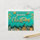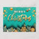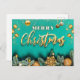 Merry Christmas Golden Ornaments and Pine Branches Holiday Postcard