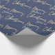 Merry Christmas Golden Script Name Blue Navy Wrapping Paper
