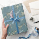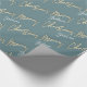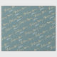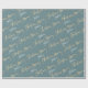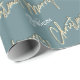 Merry Christmas Golden Script Name Smoky Aqua Blue Wrapping Paper