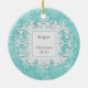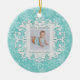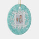 Merry Christmas Grandma and Grandpa personalised photo ornament in winter snowflakes, white on aqua with a customisable snow medallion on the back. Upload your favourite photo! Customise the Date too! Perfect Holiday gift or stocking stuffer for parents, grandparents, aunts and uncles, family and friends. Customise it with your name and date on back.