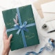Chic calligraphy script Merry Christmas elegant green gold seasonal gifts wrapping paper.