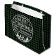 Add rustic holiday charm to your gift giving with this personalised buffalo plaid Christmas gift bag from Plaid Perfection. Featuring a classic green and black plaid background, the design is accented with a festive white circular “Merry Christmas” emblem surrounded by snowflakes, reindeer, and trees. Customise with your family name or recipient’s name for a truly one-of-a-kind presentation. Perfect for wrapping Christmas gifts, holiday party favours, or seasonal treats, this sturdy and glossy gift bag makes every package feel extra special.