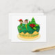 Merry Christmas Green Elves Dancing on a Cake Postcard