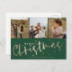 Merry Christmas Green & Faux Gold Photo Christmas Postcard