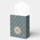 A fetching little tote bag in a blue-green for shop owners and bakers to package small bakery or food items such as candies or chocolates. Perfect for stocking-stuffers. Especially nice for gardeners with its dainty little flower and leaf lattice patterned background.