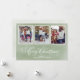 This design features a merry Christmas, with a photo collage, an elegant, green, watercolor photo card, script typography, calligraphy, simple minimalist, a minimal holiday photo cards.
