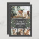 This elegant, on trend photo Christmas card features hand drawn leaves and pine branches, and space for 4 family photos. Additional photos can be added to the back.