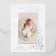 Glamourous real foil leaves and berries on a white background highlight your favourite photo on these holiday Christmas photo cards. Merry Christmas and your names on the bottom in chic silver, gold or rose gold real foil. Select High Definition for best photo quality.