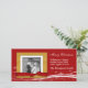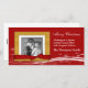 Very festive and modern Christmas photocard with a red snowy background with a golden coloured photo frame that has a realistic looking red bow across the bottom. You can upload your own photo and customise the text to suit.