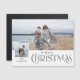 Fun Merry Christmas silver text graphic in a custom font with editable text field, small square photo insert template and large background photo template. All graphic elements are customisable.