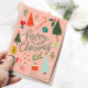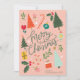 Get ready to spread some holiday cheer with this bright and festive Merry Christmas card! This design features handwritten Merry Christmas greeting in the middle, framed by christmas trees, ornaments, holly, candy cane and presents. This card is the perfect way to bring joy and warmth to your family and loved ones this holiday season.