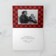 Send holiday greetings to family & friends with this cute Merry Christmas photo greeting card. The folded holiday card displays your favourite full-bleed horizontal photo with "Merry Christmas" in a white, hand-lettered script overlay. Personalise the front of the holiday photo card by adding your name & the year. The inside of the card features space for a second photo with a red and black plaid watercolor background and your custom greeting displayed below.