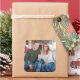 Merry Christmas hand lettered script photo holiday sticker with name and year in white text.