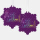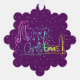 Merry Christmas handlettering deep purple Ornament Card. Artistic purple holiday card greeting decor. Merry Christmas text drawing lettering purple creative snowflake shape ornament card home decor. Handwritten Merry Christmas bright vibrant ornament card.