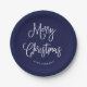 Merry Christmas | Handwritten Script on Navy Blue Paper Plate