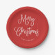 Merry Christmas | Handwritten Script on Red Paper Plate