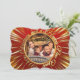 A modern photo Christmas card design with your family photo highlighted inside a golden circle with emanating rays of gold. This design carries over to the back for your custom Christmas greeting, your names and space for your handwritten personal note.
