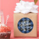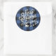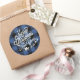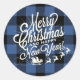 Merry Christmas Happy New Year Classic Blue Check Classic Round Sticker