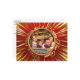 A modern photo Christmas card design with your family photo highlighted inside a golden circle star burst with emanating rays of gold. You can personalise the backside Christmas greeting, your return address and your names in script near the bottom with space for you to add a handwritten personal note.