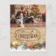 Merry Christmas and Happy New Year Holiday Greeting Postcard Templates - Rustic Carved Wood Text, Christmas Ball, Pine Tree Branch and Snowflakes.