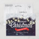 Merry Christmas and Happy New Year Holiday Greeting Postcard Templates - Christmas Pine Tree Branch, String Lights and Purple Sparkle Bokeh Lights.