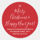 Merry Christmas Happy New Year red script address Classic Round Sticker