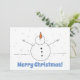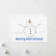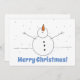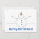 This Christmas card features a happy snowman with an orange carrot nose and outstretched arms in a snowfall with customisable blue text.