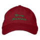 Hat shown in red with green embroidered Merry Christmas.