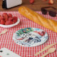Paper plates featuring a cute Dalmatian with a Christmas hat. Customisable.