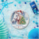 Paper plates featuring a cute Horse with a Christmas hat. Customisable.