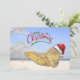 Celebrate the holidays with this gorgeous coastal-themed Christmas card. The unique design is an old world style map of Hilton Head Island with a festive Santa hat in red and white. The text reads, "Merry Christmas." The background is a photo image of a beautiful HHI beach. The backside text reads, "Warm wishes from Hilton Head Island for a wonderful holiday and all the best in the New Year!" The text may be edited for personalisation at no additional charge. Please browse our complete collection of coastal, Lowcountry, and Hilton Head themed holiday cards and gifts. Special design requests accepted. (Creative design by Glenda Motsavage.)