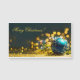 Merry Christmas- Greeting holiday card. New Year glittering decoration design. Christmas ball on golden texture.