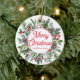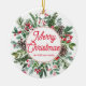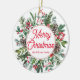 The Elegant Merry Christmas Holiday Greenery Red Script Ceramic Ornament is a beautiful addition to any Christmas tree or holiday decor. This ornament features a vibrant red script that reads "Merry Christmas" against a lush green background of evergreen branches, holly leaves, and berries. The ceramic material gives the ornament a classic and timeless feel that will last for years to come.