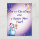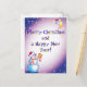 Christmas postcard with snowman and moon