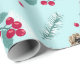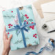 Merry Christmas Holly Berry Fir Branches Blue Red Wrapping Paper