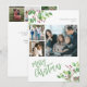 Modern stylish Merry Christmas green handwritten calligraphy script 6 family photo collage simple white elegant family holiday card with your custom personalised text on both sides featuring watercolor botanical greenery foliage and holy berries.