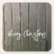 Merry Christmas Holly Black Barn Door Farmhouse Square Paper Coaster