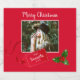 A photo frame in Christmas red with a white border titled “Merry Christmas”  - adorned with a very festive green and berry red holly sprig and a red ribbon gift tag bearing your name or a message of love and festive greetings.