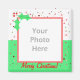 A bright and festive green, red and white holiday photo magnet. Add your favourite holiday photo. Customisable text says "Merry Christmas!".