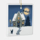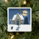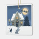 Merry Christmas House with Cat and Santa Ceramic Ornament