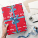 Fun Christmas wrapping paper featuring a photograph of a tropical green-crowned brilliant hummingbird from Costa Rica with wide open wings showing the glory of his shiny blue and green feathers, set against a holiday red background. You can personalised the greeting above him ("Merry Christmas," "Joy to the World," etc.) and two lines of text underneath in modern white typography. Great for birders, nature and garden lovers. Photo taken in Costa Rica.