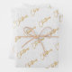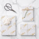 Merry Christmas in Gold writing wrapping paper with a little black and white christmas icons.