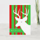 Merry Christmas in Korean. White deer (buck) on a background of red and green stripes that represents an abstract wooded area or forest. Deer clip art courtesy of Last-Dino/OpenClipArt.