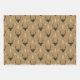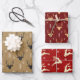 Merry Christmas holiday wrapping paper sheets featuring jumping reindeer, snow and reindeer head in brown and red background for your Christmas gift wrapping.