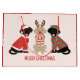 Cute illustration of three Labrador Retrievers dressed in Christmas attire.