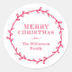 Merry Christmas Laurel Wreath Red White Name Classic Round Sticker