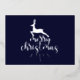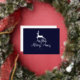 A gorgeous silver foil design of a leaping deer over Merry Christmas text on the front of this silver and navy card.
