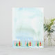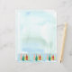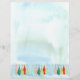 Merry Christmas paper for holiday letters featuring a vintage inspired design with holiday tree shapes in drifts of snow in soft shades of emerald, cotton candy pink, golden yellow, and more with a frosty blue watercolor background.