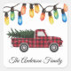Merry Christmas Light Bulbs truck-tree Family Name Square Sticker