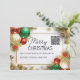 A beautiful and luxurious design featuring a think rectangular golden frame on which faux gold winter 3D snowflakes and leaves rest. The top and bottom left and right corners have decorative, ornate red, green and gold Christmas tree bauble decorations tucked into them which are adorned with delicate and opulent golden swirls and decorative motiffs. Black templates for your custom wording appear inside the frame and may be personalised to suit your requirements. As may the QR code inlay (change to your own code or logo) on the front and photo template on the back. These are ideal for both personal and business use over the festive holiday season. Merry Christmas!